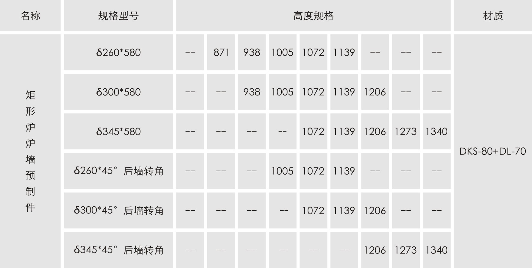 型號參數: